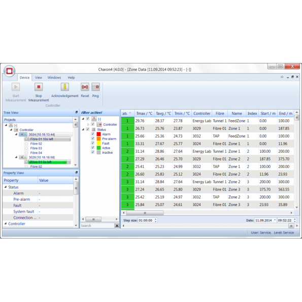 - 以拉曼(Raman)效應為基礎的專利OFDR技術(MM或SM),能傳送沿著整條感測電纜長度從遠處到最遠30km的精準溫度讀值在±0.02°C及0.1m範圍內。