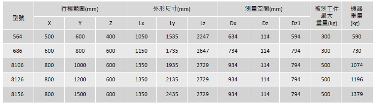 採用柔性懸掛系統及專利阻尼平衡機構,改善機器的動態特性並加強Z軸安全保障 光柵熱膨脹係數獲得PTB認證 整體花崗岩工作臺,檯面平面度符合 DIN876標準 一體式燕尾形導軌,提高運行精度 專利X軸減速機構避免軸向扭擺 採用預載荷空氣軸承,消除摩擦力和運行磨損對機器造成的影響 活動橋式結構,提供更開敞的測量空間 精密三角梁TM (TRICISIONTM) 式橫樑設計,降低重心、同時比等寬度軸承跨距的其他形式橋梁重量更輕 詳細規格,歡迎洽詢